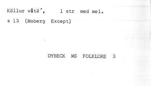 //// Köllur våtä^, 1 str med mel. //// s 13 (Moberg Except) //// * .i //// DYBECK MS FOLKLORE 3 ////