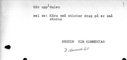 //// Kör upp^dalen ' //// mel se: Kära små stintor drag på er små //// skorna //// BRODIN RIM KOMMENTAR ////