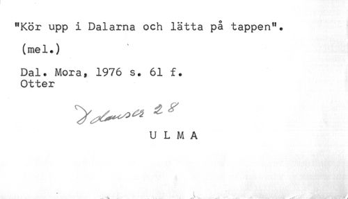 //// "Kör upp i Dalarna och lätta på tappen", //// (mel.) //// Dal. Mora, 1976 s. 61 f. //// Otter //// U L M A ////