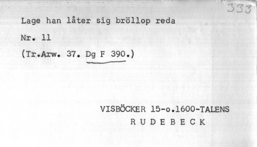 //// ^ J //// Lage han låter sig bröllop reda //// Nr. 11 //// (Tr.Arw. 37. Dg F 390.) //// I //// VISBÖCKER 15-o.1600-TALENS //// RUDE BECK ////