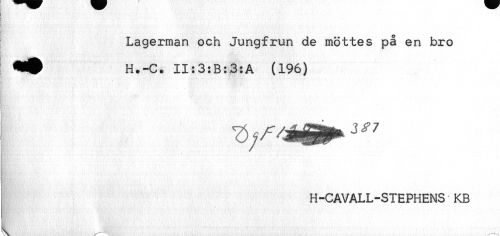 //// Lagerman och Jungfrun de möttes på en bro //// H.-C. II:3:B:3:A (196) //// H-CAVALL-SIEPHENS KB ////