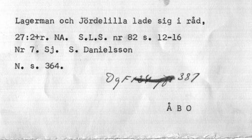 //// Lagerman och Jördelilla lade sig i råd, //// 27:2+r. NA. S.L.S. nr 82 s. 12-16 //// Nr 7. Sj. S. Danielsson //// N. s. 364. //// ÅBO ////