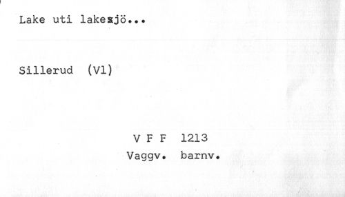 //// Lake uti lakesjö.+. //// Sillerud (VI) //// V F F 1213 //// Vaggv. barnv. ////