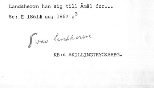 //// Landsherrn han sig till Amal for... //// Se: E 186H gg; 1867 a^ //// KB:s SKILLINGTRYCKSREG. ////