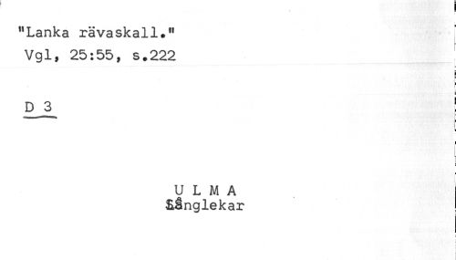 //// "Lanka rävaskall." //// Vgl, 25:55, s.222 //// D 3 //// < //// - //// U L M A //// sånglekar //// * ( ////