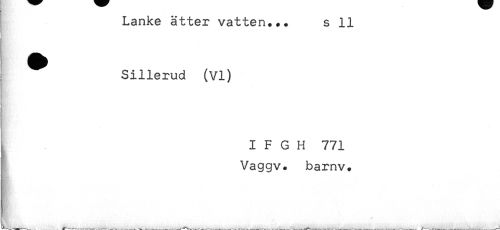//// Lanke ätter vatten... s 11 //// ^ Sillerud (VI) //// I F G H 771 //// Vaggv. barnv. //// § //// L ____ ////