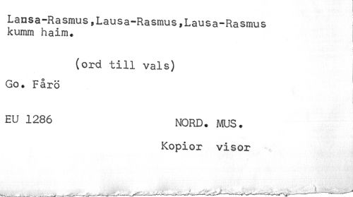 //// Lansa-Rasmus,Lausa-Rasmus,Lausa-Rasmus //// kumm haim. //// ! //// (ord till vals) //// Go* Fårö //// j //// ^ NORD. MUS. //// Kopior visor ////