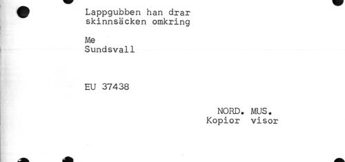 //// ^ Lappgubben han drar //// skinnsäcken omkring //// t //// Me //// Sundsvall //// EU 37438 //// NORD. MUS. //// Kopior visor ////