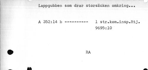 //// Lappgubben som drar storsäcken omkring... //// A 352:14 b ----- 1 str.kom.insp.Rtj. //// ! 9695:10 //// t //// ^ A* ^ ////