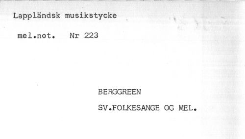 //// Lappländsk musikstycke //// mel.not. Nr 223 //// BERGGREEN //// SV.FOLKESANGE OG MEL. ////