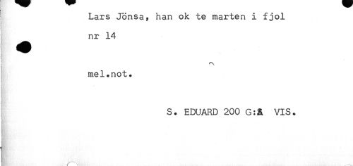 //// ' Lars Jönsa, han ok te marten i fjol //// i //// i //// nr 14 //// - //// , mel.not. //// 4 //// ti //// t //// t //// S. EDUARD 200 G:ä VIS. //// t //// t * ////