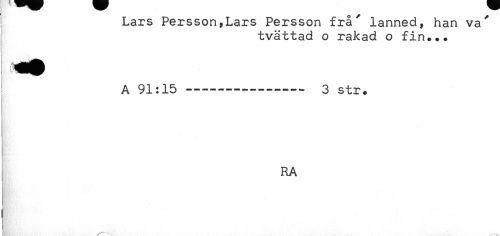 //// o ^ ^ //// < Lars Persson,Lars Persson fra lanned, han va //// tvättad o rakad o fin... //// ! //// A 91:15----- 3 str. //// < //// t //// t //// * //// RA ////