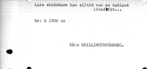 //// Lars skraddare han alltid var en sablans //// livadMyr*.. //// Se: E 1906 oo //// KB:s SKILLINGTRYCKSREG. //// ; ////