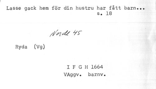 //// Lasse gäck hem för din hustru har fått barn... //// s. 18 //// Ryda (Vg) //// I F G H 1664 //// VAggv* barnv. ////