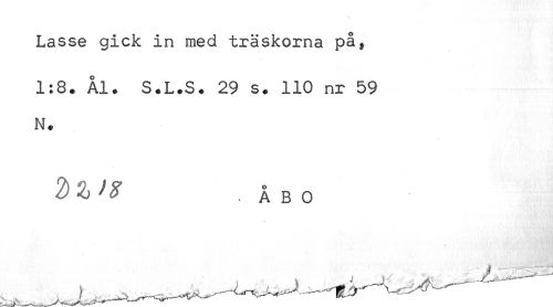 //// Lasse gick in med träskorna på, //// 1:8. Ål. S.L.S. 29 s. 110 nr 59 //// N. //// 2) & ^ ÅBO ////