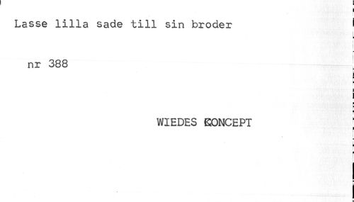//// * //// Lasse lilla sade till sin broder t //// t //// : //// nr 388 ^ //// ! //// ! //// H //// WIEDES KONCEPT //// f //// } //// j- ////