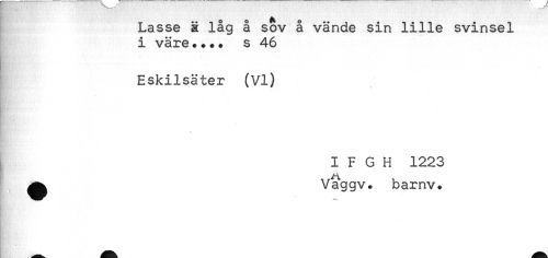 //// Lasse ä låg å sov å vände sin lille svinsel //// i väre..+. s 46 //// Eskilsäter (VI) //// I F G H 1223 //// ^ Vaggv. barnv. ////