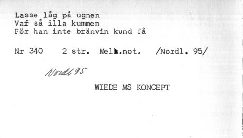 //// Lasse låg på ugnen //// Vaf så illa kummen //// För han inte bränvin kund få //// ! //// Nr 340 2 str. MeH.not. /Nordl. 95 //// /) //// WIEDE MS KONCEPT //// L //// ! ////