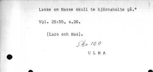 //// ' a //// Lasse om Masse skull te björnaholte gå." //// . //// Vgl. 25:55, s.28. //// (Lars och Mas). //// ^ U L M A ////
