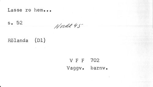 //// Lasse ro hem... //// Rölanda (Dl) //// V F F 702 //// Vaggv. barnv. //// k ////