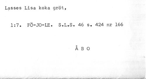 //// Lasses Lisa koka gröt, //// 1:7. FÖ-JO-LE. S.L.S. 46 s. 424 nr 166 //// ÅBO //// _ __ ^ . , < ////