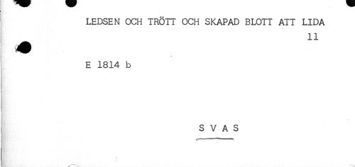 //// LEDSEN OCH TRÖTT OCH SKAPAD BLOTT ATT LIDA //// 1 * //// 11 //// E 1814 b //// ) //// S V A S //// i //// - ^ ////