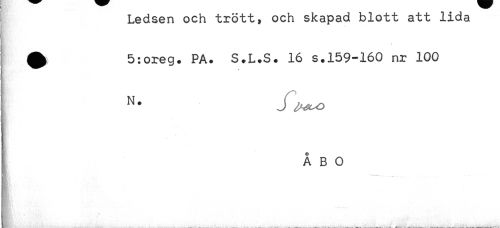 //// ! Ledsen och trött, och skapad blott att lida //// ^ 5:oreg. PA. S.L.S. 16 s.159-160 nr 100 //// ! n. j ^ //// t ÅBO ////
