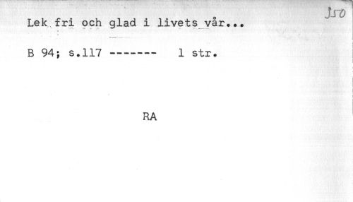 //// Lek,fri och glad i livets var... //// .-***. — -----..... //// ? //// B 94; s.117------- 1 str. //// ! //// RA ////
