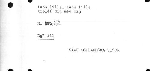 //// ^ Lena lilla, Lena lilla //// troléf dig med mig //// Nr //// DgF 311 //// * ..... t //// SÄWE GOTLÄNDSKA VISOR ////