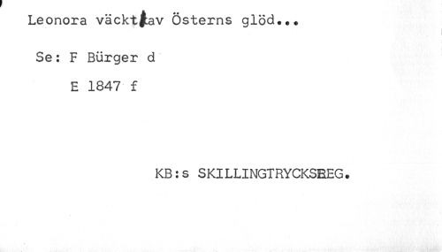 //// Leonora väckt^av Österns glöd... //// t //// i //// < //// ! //// Se: F Burger d //// E 1847 f //// KB:s SKILLINGTRYCKSREG. ////