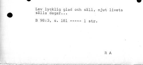 //// Lev lycklig glad och säll, njut livets //// ^ sälla dagar... //// B 98:3, s. 181.....1 str. //// * //// R A ////