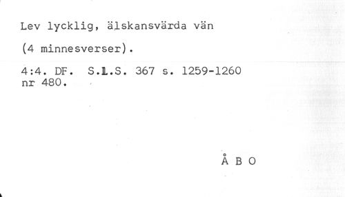 //// Lev lycklig, älskansvärda vän //// (4 minnesverser). //// 4:4. DF. S.L.S. 367 s. 1259-1260 //// nr 480. //// * ////
