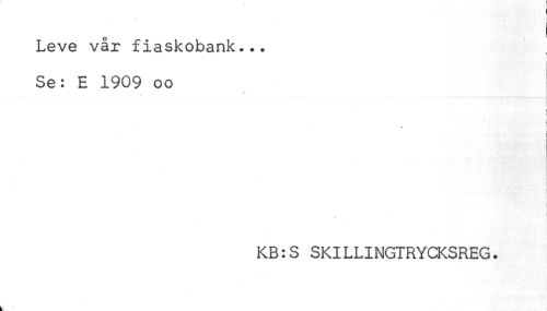 //// Leve vår fiaskobank... //// i //// Se: E 1909 oo //// ) //// * //// KB:S SKILLINGTRYCKSREG. //// ^ * ////