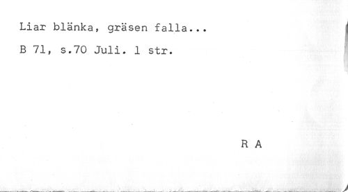 //// Liar blänka, gräsen falla... { //// B 71, s.70 Juli. 1 str. //// R A ////