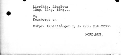 //// Lierätta, Lierätta //// lång, lång, lång... //// Vg //// Korsberga sn //// Mskpt. Arbetssånger I, s. 809. E.U.22335 //// Ha^'''' //// NORD.MUS. //// t ////