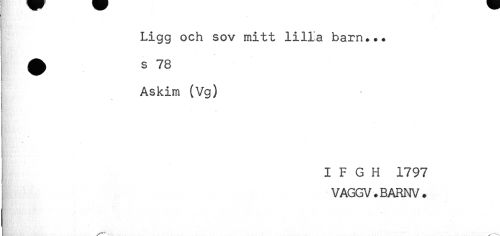 //// Ligg och sov mitt lilla barn... //// t //// t //// , Askim (Vg) //// I F G H 1797 //// VAGGV. BARM/. ////