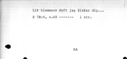 //// - - „ - - - - ... - .- //// Lik"blommans doft jag älskar dig... //// B 72:4, s.69 ------- 1 str. //// RA ////
