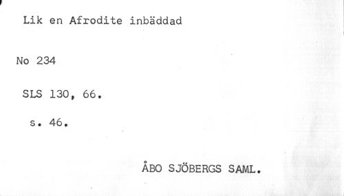 //// Lik en Afrodite inbäddad //// ! //// No 234 //// SLS 130, 66. //// s. 46. //// < //// ! //// ÅBO SJÖBERGS SAML. ////
