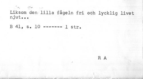 //// . t'*"* ** , , //// Liksom den lilla fågeln fri och lycklig livet //// njut... //// B 41, s. 10-------1 str. //// R A //// . * //// ! //// _ ____.. __J ////
