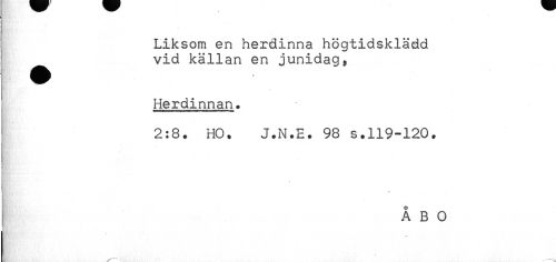 //// Liksom en herdinna högtidsklädd //// vid källan en junidag, //// Herdinnan. //// 2:8. HO. J.N.E. 98 s.119-120. //// t //// T' ' //// ! ////