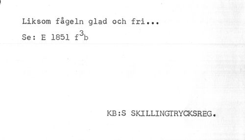 //// Liksom fågeln glad och fri... //// Se: E 1851 f^b //// KB:S SKILLINGTRYCKSREG. ////