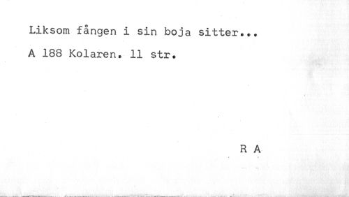 //// Liksom fången i sin boja sitter... //// A 188 Kolaren. 11 str. //// R A ////