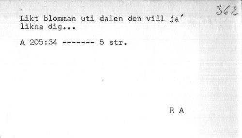 //// Likt blomman uti dalen den vill ja //// likna dig... //// A 205:34 -------5 str. //// R A ////
