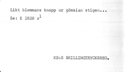 //// Likt blommans knopp ur gömslan stigen... //// Se: E 1828 x"^ //// KB:S SKILLINGTRYCKSREG. ////