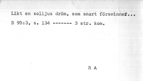//// Likt en solljus dröm, som snart försvinnef... //// B 95:3, s. 134-------3 str. kom. //// * //// R A ////