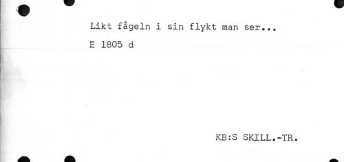 //// Likt fågeln i sin flykt man ser... //// E 1805 d //// y' //// KB:S SKILL.-TR. ////