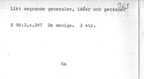 //// Likt segrande generaler, ideer och personel //// B 98:3,s.247 De menige. 3 str. //// * //// RA ////