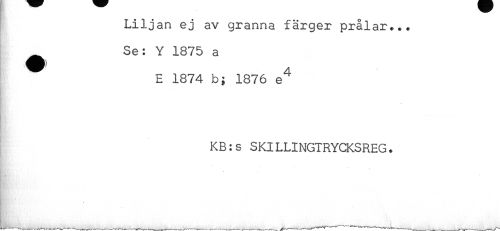//// Liljan ej av granna färger prålar... //// ^ Se: Y 1875 a //// E 1874 b; 1876 e^ //// KB:s SKILLINGTRYCKSREG. ////