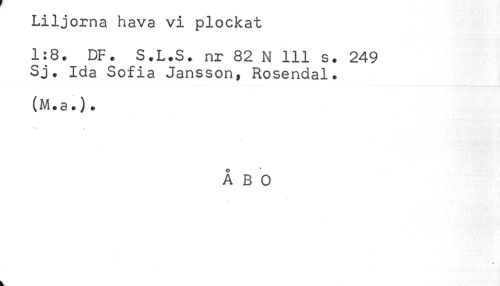 //// Liljorna hava vi plockat //// 1:8. DF. S.L.S. nr 82 N 111 s. 249 //// Sj. Ida Sofia Jansson, Rosendal. //// (M.a.). //// ÅBO ////