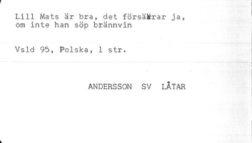 //// Lill Mats är bra, det försäkrar ja, //// om inte han söp brännvin //// < //// i //// Vsld 95, Polska, 1 str. //// - //// i //// t //// < //// _ //// ANDERSSON SV LÅTAR ////